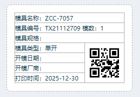 【点晴模切ERP】模具信息如何生成二维码?进入工程管理模块,找到:模具(刀模)管理-》模具(刀模)管理页面,选中需要打印二维码的模具代码,点击打印即可。​