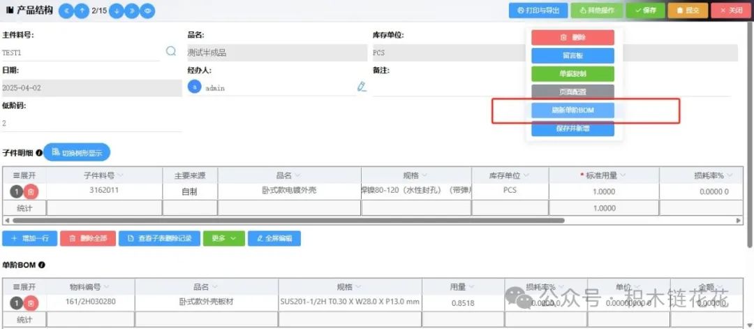 选择bom的原材料如下图: