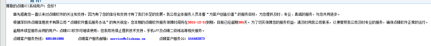 今天收到Email到期提醒邮件:尊敬的点晴MIS系统用户,多谢您一直以来的关注和支持,因为....,要如何解决?